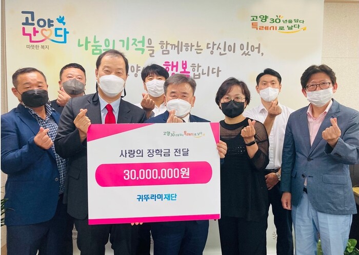 [로컬세계 = 이영원 기자]경기 고양특례시는(시장 이동환)는 지난 26일 귀뚜라미그룹에서 저소득층 학생의 학업 장려를 위해 장학금 3천만원을 지원해 전달식을 개최했다고 27일 밝혔다.