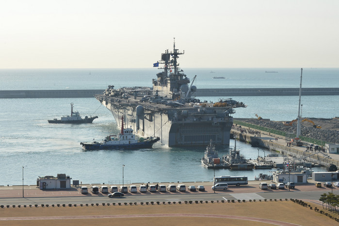▲지난 3일 부산항에 입항한 미국 제7 강습상륙전단 본함 리차드함. |