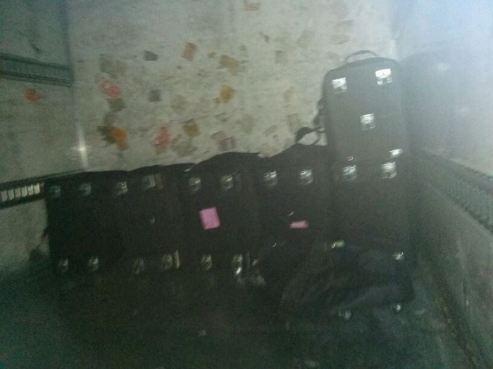 ▲운송트럭에 실린 면세품 행랑. 행랑의 바퀴 수에 따라 업체를 식별할 수 있다. 아랫줄에 쌓인 행랑은 바퀴가 4개 뿐이지만 윗줄 행랑은 바퀴가 5개로 다른 면세점 물품이 담겨져 있다. |