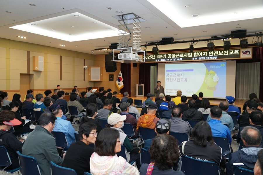 [로컬세계 = 맹화찬 기자] 부산시 남구는 지난 24일 구청 1층 대강당에서 '2025년 제4단계 공공근로사업' 및 지역공동체 일자리사업 참여자 80여 명을 대상으로 안전보건교육을 실시했다고 27일 밝혔다.