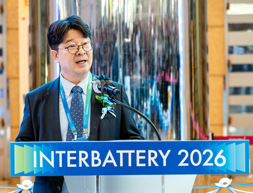 산업통상부는 올해 14번째를 맞이하는 국내 최대이자 대표적인 국제 배터리 전시회 ‘인터배터리 2026’를 11일부터 3일간 코엑스에서 개최한다. 인터배터리 2026 개막식에서 엄기천 한국배터리산업협회장이 개회사를 하고 있다. 코엑스 제공