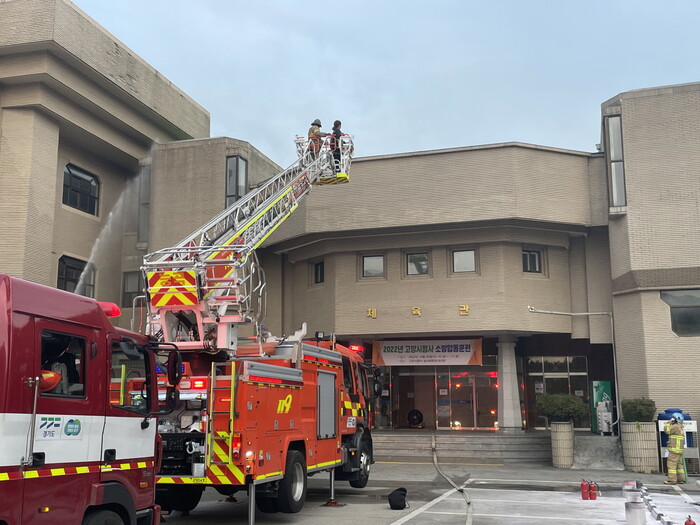 [로컬세계 = 이영원 기자]경기 고양특례시(시장 이동환)는 지난 26일 시청 체육관 앞에서 시청 전 부서 직원이 참여한 가운데 고양소방서와 함께 소방합동훈련을 실시했다고 27일 밝혔다.