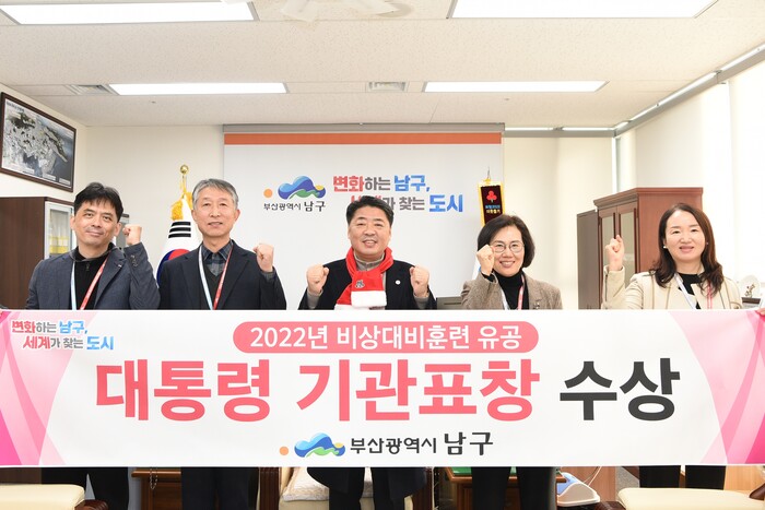 [로컬세계 부산=맹화찬 기자]부산 남구는 2022년 을지연습에서 비상대비 확립에 이바지한 공로로 최우수기관으로 선정돼 ‘대통령 기관 표창’을 수상했다고 23일 밝혔다.