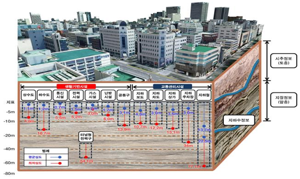 ‘지하공간 생활안전’은 지하시설물 등의 안전한 관리를 위해 수도권 10개 시를 대상으로 지하공간정보 15종을 포함한 3차원 지하공간 통합지도를 제작한다(현재 15개 시 완료, 2020년까지 전국 85개 시 구축 예정). 지자체별 지하공간 통합지도를 구축 완료한 후, 민간·공공기관이 지하공사 시행 시 활용할 수 있도록 해당 지자체에 지도정보를 제공한다