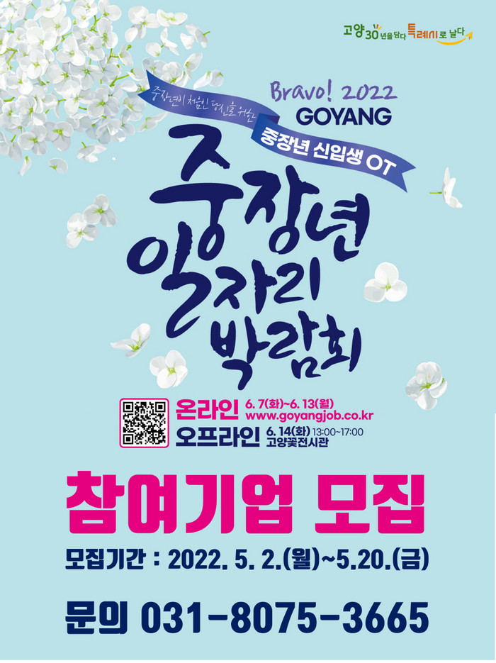 [로컬세계 이영원 기자]경기 고양시가 'Bravo! 2022 고양시 중장년일자리박람회' 개최를 앞두고 2일부터 오는 20일까지 참여기업을 모집한다.