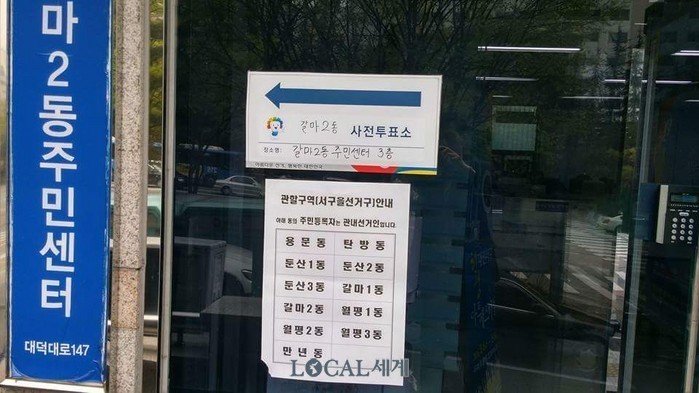 ▲대전 갈마2동 사전투표소. 조윤찬 기자. |