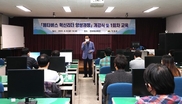 ▲지난 8일 김주수 군수가 ‘의성 메타버스 혁신리더’ 개강식에서 인사말을 하고 있다. 의성군 제공 |