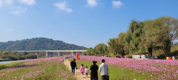 분홍 물결의 창릉천 코스모스 길은 SNS에서 서울 근교의 나들이 명소로 입소문을 타고 있다.