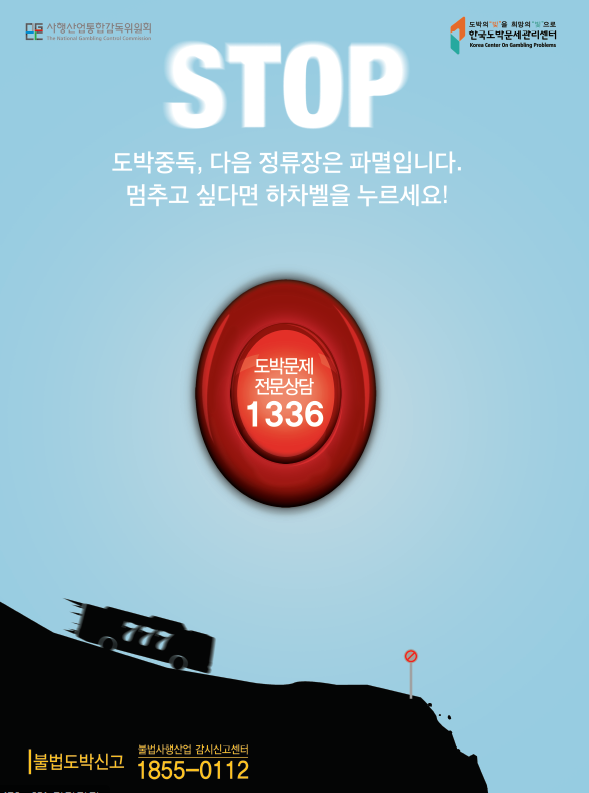 한국도박문제관리센터는 도박문제 예방 및 치유‧재활 사업을 수행하는 공공기관이다. 도박문제자 본인 또는 가족은 누구나 ▲전화 - ☎1336 ▲온라인 채팅 - 넷라인 ▲문자 - #1336 ▲카카오톡 – 챗봇(‘한국도박문제관리센터’ 친구 추가)을 통해 상담 서비스를 무료로 받을 수 있다.