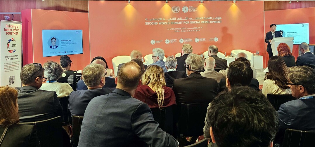 농협중앙회 이종욱 미래혁신실장은 ICAO(국제협동조합농업기구)를 대표해 지난 10월 서울에서 선포된「ICAO 서울선언문」과 한국 농협의 「농심천심 운동」을 소개했다. 이어“세계는 식량안보 위기와 도농격차 등 복합적 도전에 직면해 있다”며“선도적인 협동조합이 중심이 되어 인류 공동과제 해결과 지속가능한 발전 실현에 기여해야 한다”고 강조했다.