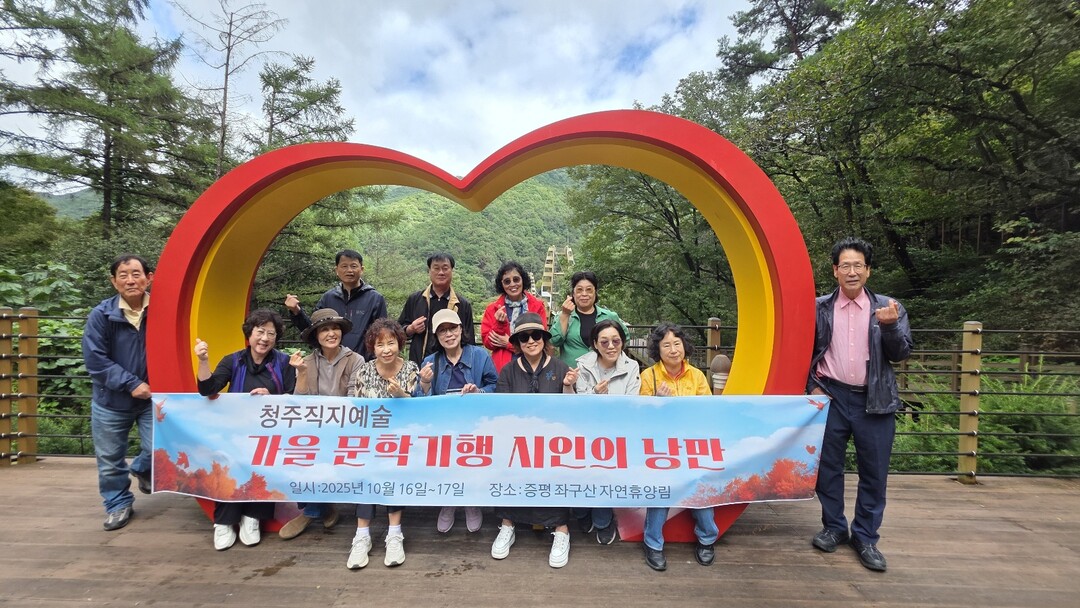 청주직지예술(회장 김혜경)은 16일부터 17일까지 이틀동안 증평 좌구산 자연휴양림 일대에서 ‘시를 읊다’를 주제로 가을 문학기행을 개최했다.