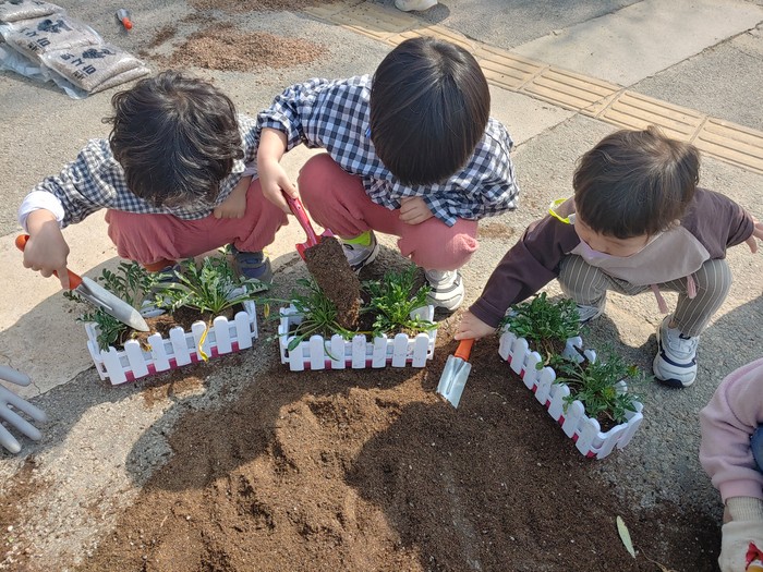 학생들은 고사리같은 손으로 자기만의 예쁜 꽃밭을 만들기 위해 한번도 들어보지 못한 꽃삽으로 자기만의 미니정원을 꾸미며 좋아하는 모습이 너무도 인상 깊은 하루였다.