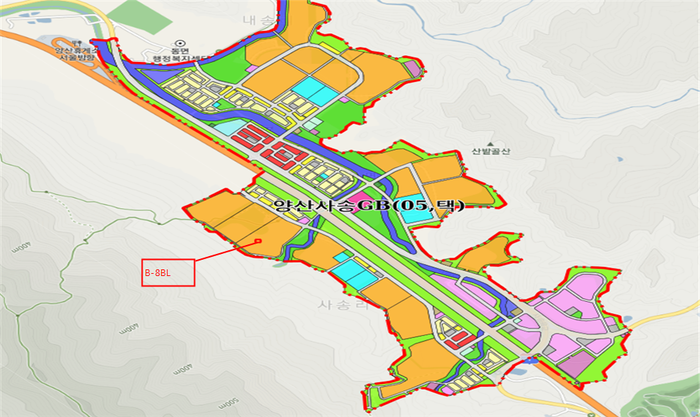 ▲공모대상지 양산사송 B-8 블록 위치도.(국토부 제공) |
