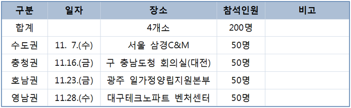 컨설팅은 이달 ▲7일 수도권 ▲16일 충청권 ▲23일 호남권 ▲28일 영남권 순서로 매주 1회씩 실시한다.