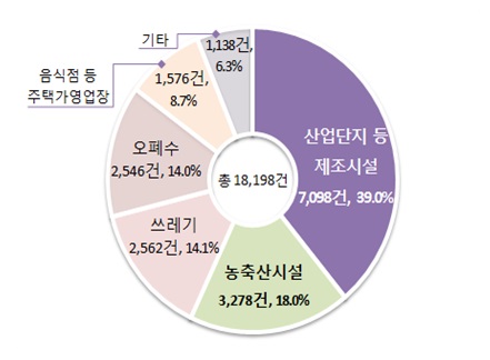 악취 유발 요인으로는 산업단지(공장) 등 제조시설에서 나오는 가스·매연이 39.0%로 가장 많았으며, 다음으로 축사·농장 등 농축산시설의 분뇨 냄새 18.0%, 쓰레기(처리시설 포함)·폐기물 14.1%, 하수 등 오폐수 14.0%, 음식점 등 주택가 영업장 악취 8.7% 순이었다.