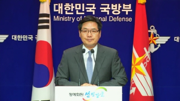 ▲ 국방부 김민석 대변인이 북한 영해침범 경고 관련 브리핑을 하고 있다.<사진출처=e-브리핑 캡처화면> |