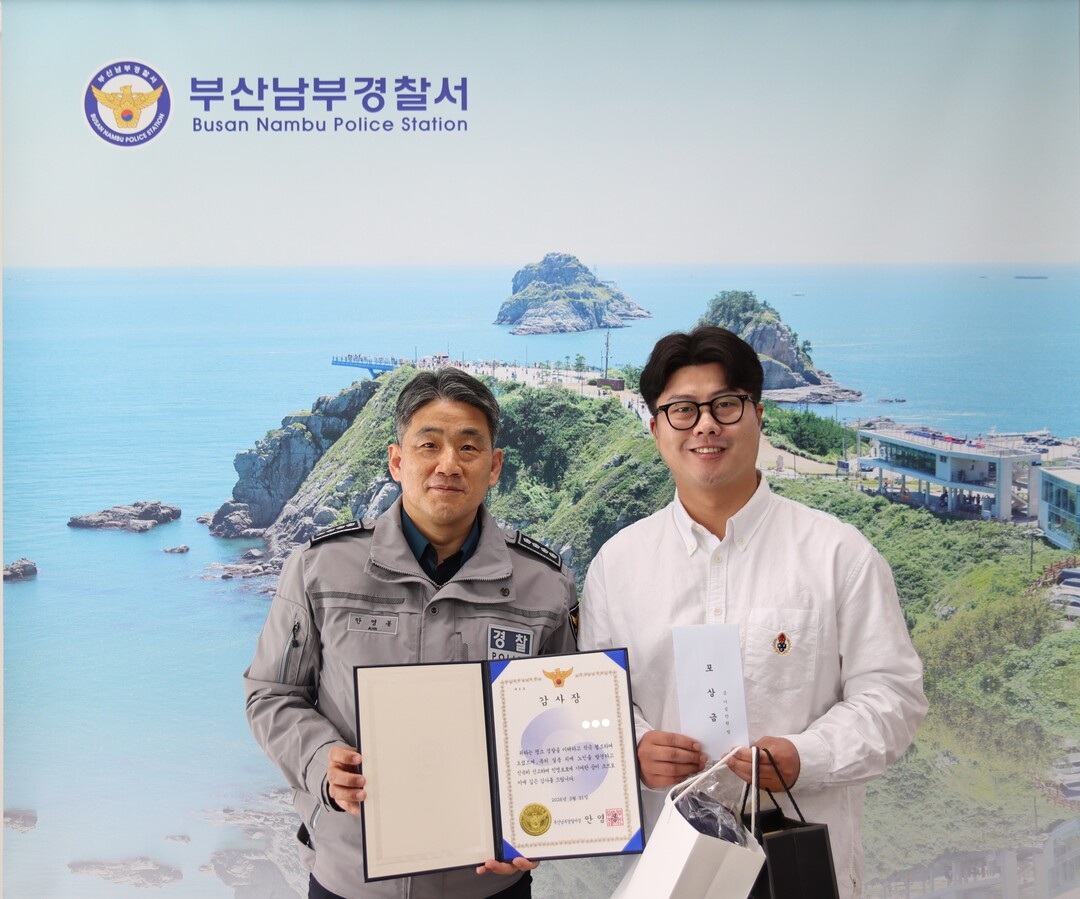 [로컬세계 = 맹화찬 기자] 부산 남부경찰서는 3. 31.(화) 10:00 “실종경보문자”를 확인 “외국인 치매노인”을 발견 신고한 시민 A씨(36세, 남)에게 감사장·포상금을 수여하였다.