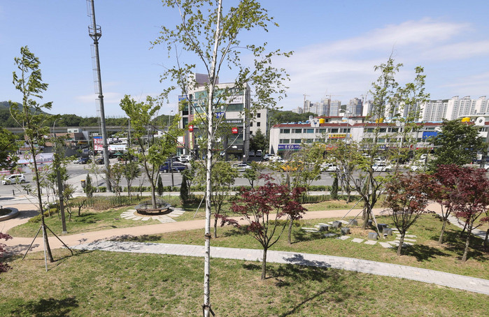 ▲새단장을 마친 역북동 마중뜰 소공원 전경. 용인시 제공 |