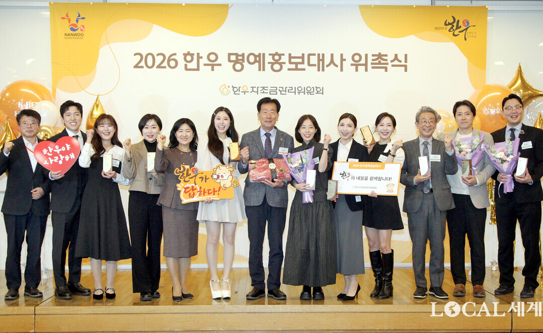 [로컬세계 = 지차수 기자] 한우자조금관리위원회(위원장 민경천, 이하 한우자조금)는 6일 서울 중구 대한상공회의소에서 ‘2026년 한우 명예홍보대사 위촉식’을 개최하고, 다양한 분야에서 활약 중인 16인을 한우 명예홍보대사로 공식 위촉했다.