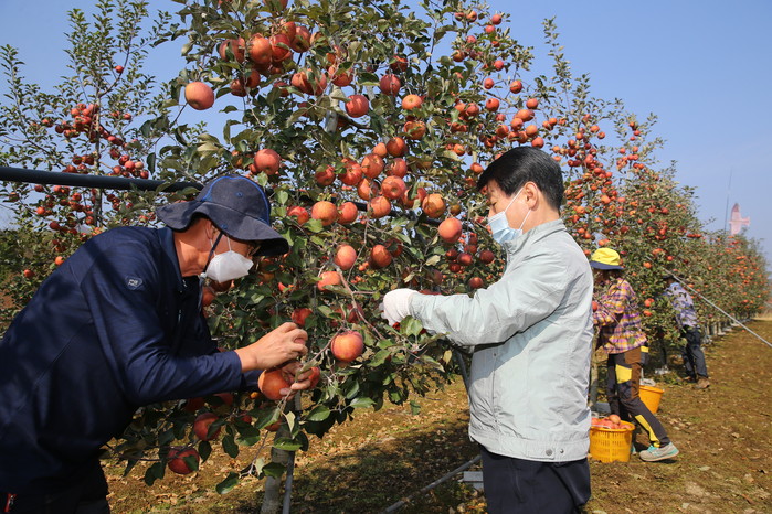 [로컬세계 박상진 기자]경북 의성군의회[로컬세계 박상진 기자](의장 배광우) 사무과 직원 14명은 지난 27일 점곡면 명고2리 사과 농가를 찾아 고령화로 부족한 일손을 보태기 위해 농촌일손돕기를 실시했다고 28일 밝혔다.