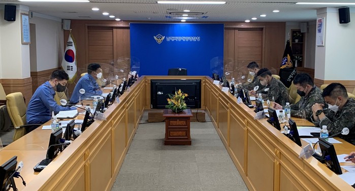 ▲지난 3일 오후 남해해경청 회의실에서 남해해경과 해군3함대사령부 부산항만방어전대, 육군53보병사단 등이 협업간담회를 개최하고 있다. 남해해경청 제공 |