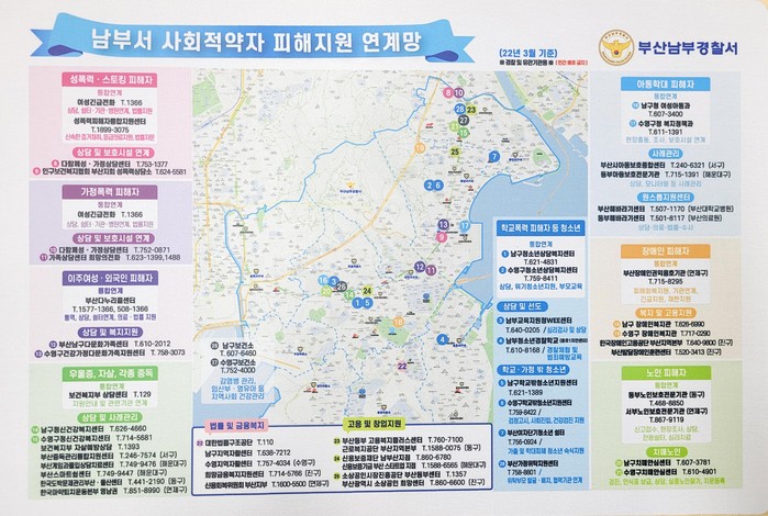 ▲부산 남부서 관할권 사회적약자 피해지원 연계망 현황체계도. 부산남부서 제공 |