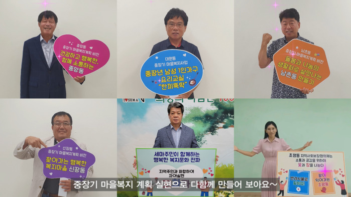 이를 통해 동별 비전 및 세부사업은 △중앙동, 건강하고 행복한, 함께 소통하는 중앙동 비전 아래 복지사각지대 발굴을 위한 ‘희망톡’ 사업 △대원동, 소통과 관심으로 활기 넘치는 행복한 대원동 비전 아래 중장년 남성 1인 가구 요리 교실‘한끼 뚝딱’사업 △남촌동, 돌봄과 나눔의 생활화로 살맛나는 남촌동 만들기 비전 아래 결식 저소득층에 밑반찬 지원 ‘매주맛나반찬’사업 △신장동, 찾아가는 행복한 복지마을 신장동 비전 아래 조손가정 등의 방학기간 돌봄 문제를 해결‘슬기로운 방학생활’△세마동, 세마주민이 함께하는 행복한 복지문화를 만드는 세마동 비전 아래 문화공연을 관람할 수 있는 기회를 제공하는‘지·화·자’사업 △ 초평동, 소통과 공감을 위하여 꽃과 장을 나누는 초평동 비전 아래 마음이 힘든 취약계층의 정서지원 ‘플라워(Flower) 힐링 UP! 사업’이 있다.