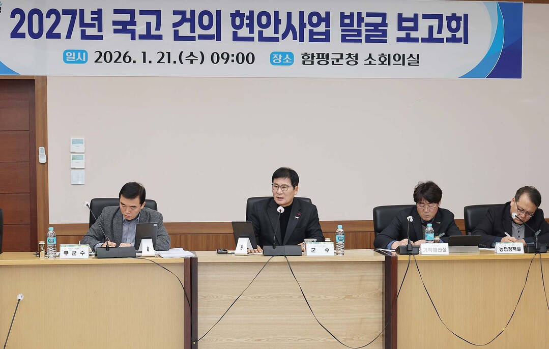 함평군은 21일 ‘2027년 국고 건의 현안 사업 발굴 보고회’를 열고 총사업비 5,675억 원 규모의 현안 사업을 대상으로 국비 확보 전략과 추진 방향을 점검했다고 밝혔다.
