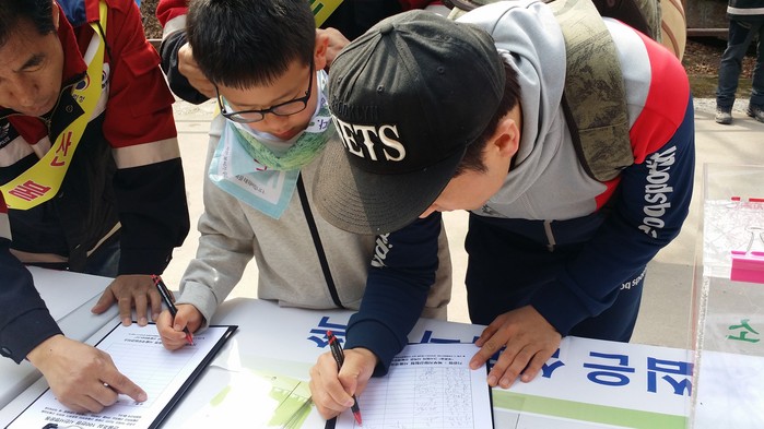 ▲캠페인에 참가한 시민 학생들이 서명을 하고 있다. |
