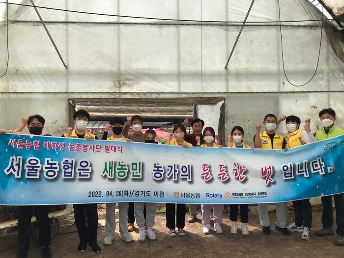 한편 서울농협은 지난해 3월 한국로타리 청소년연합과 도농교류⋅사회공헌 활성화 업무협약(MOU)을 맺고 농번기 일손돕기 및 농촌 환경정화 등 지속적인 영농지원 활동을 전개해 오고 있다.