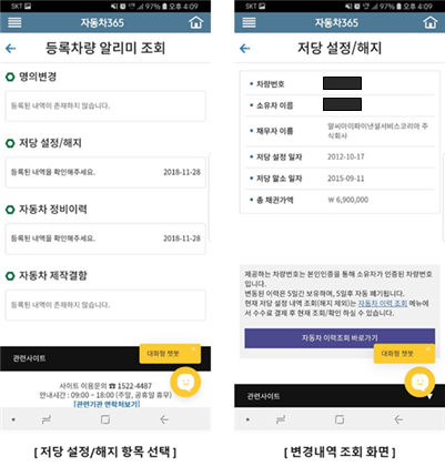 특히 자동차 안전과 직결되는 ‘자동차 제작 결함(리콜)’ 정보는 능동형 알리미 서비스뿐만 아니라 한국교통안전공단에서 제공하는 자동차제작결함 자료를 ‘자동차리콜센터’ 항목에서 별도 확인할 수 있도록 개선했다.