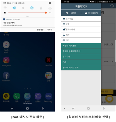 능동형 알리미 서비스(Push)는 소유권 등 명의변경, 저당권 설정변경, 정비이력, 제작결함(리콜) 정보 등을 소유자가 신청하면 처리결과를 자동으로 알려준다.