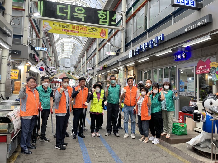 ▲송북동 송탄시장상인회와 민관합동 환경정화활동 기념사진을 촬영한 모습. 평택시 제공 |