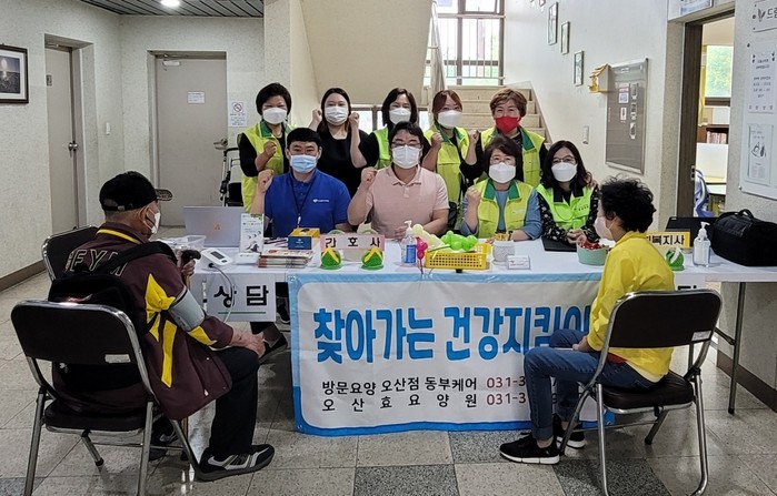 [로컬세계 김병민 기자]경기 오산시 신장동 행정복지센터(동장 서정욱)는 지난 18일, 금암마을휴먼시아 3단지 아파트에서 3단지 관리사무소(소장 이봉식) 및 (주)동부케어 오산지점(대표 박명숙), 오산효요양원(시설장 박경태) 각 기관의 재능기부를 통한‘찾아가는 보건복지서비스’를 추진했다고 밝혔다.