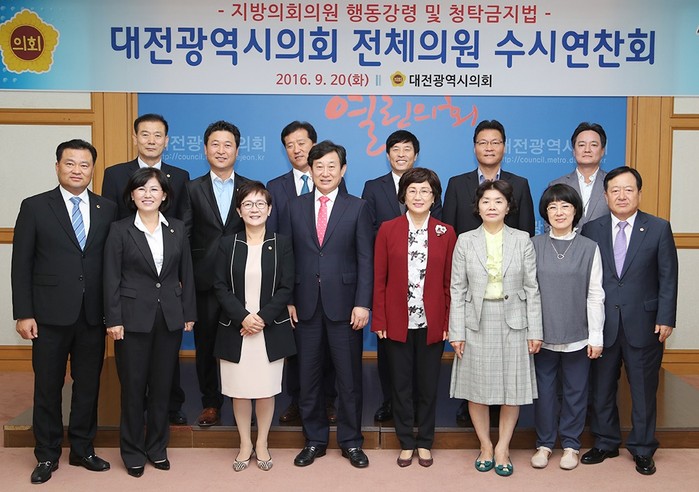 [로컬세계 조윤찬 기자]대전시의회는 20일 제227회 임시회 제1차 본회의가 끝난 후 의회 대회의실에서 국민권익위원회 박기준 강사를 초빙한 가운데 ‘지방의회의원 행동강령 및 청탁금지법의 이해’라는 주제로 전체의원 수시연찬회를 개최했다.