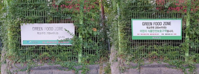 어린이 식품안전보호구역은 학교와 해당학교의 경계선으로부터 직선거리 200미터의 범위 안의 구역을 말하며, 표지판은 구역 내 학교 정·후문 근처 및 학교로 이어지는 도로 등에 설치하도록 규정돼 있다.