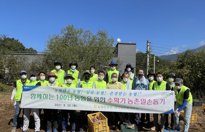 농협중앙회(회장 이성희) 감사위원회(위원장 이규삼)사무처는 30일 강원도 원주시 소초농협 관내 고구마 농가를 방문해 농촌일손돕기를 실시했다고 밝혔다.