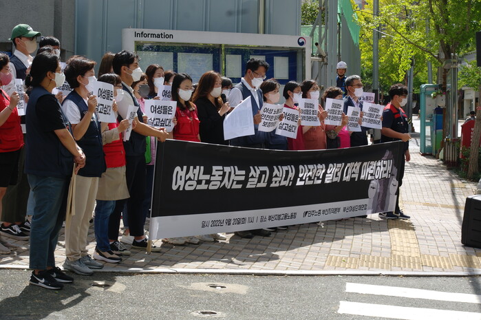 "여성 노동자가 죽지 않는 일터, 여성 혐오 범죄가 없는 안전한 일터 대책 마련하라" 정부에 촉구