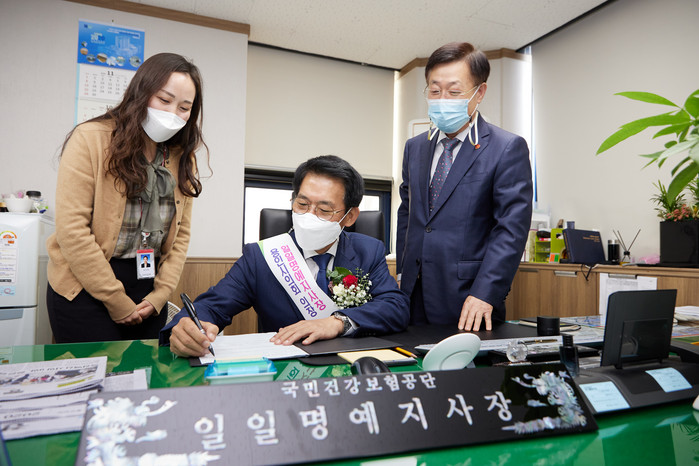 이날 김 의장은 황순창 국민건강보험 용인동부지사장으로부터 일일 명예 지사장 위촉장을 받고, 업무 내용에 대한 설명을 들은 후 결재를 하는 등 체험을 했다.