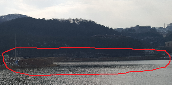 ▲경기 화성시 중리 저수지에 불법 성토가 이뤄지고 있다. |