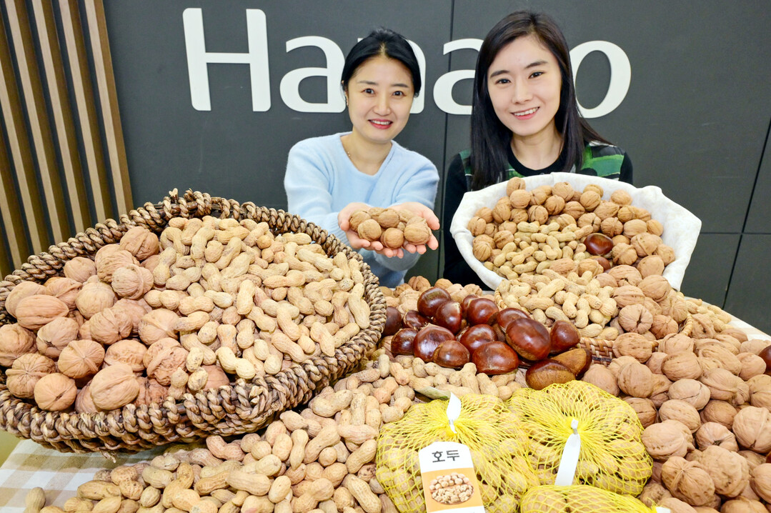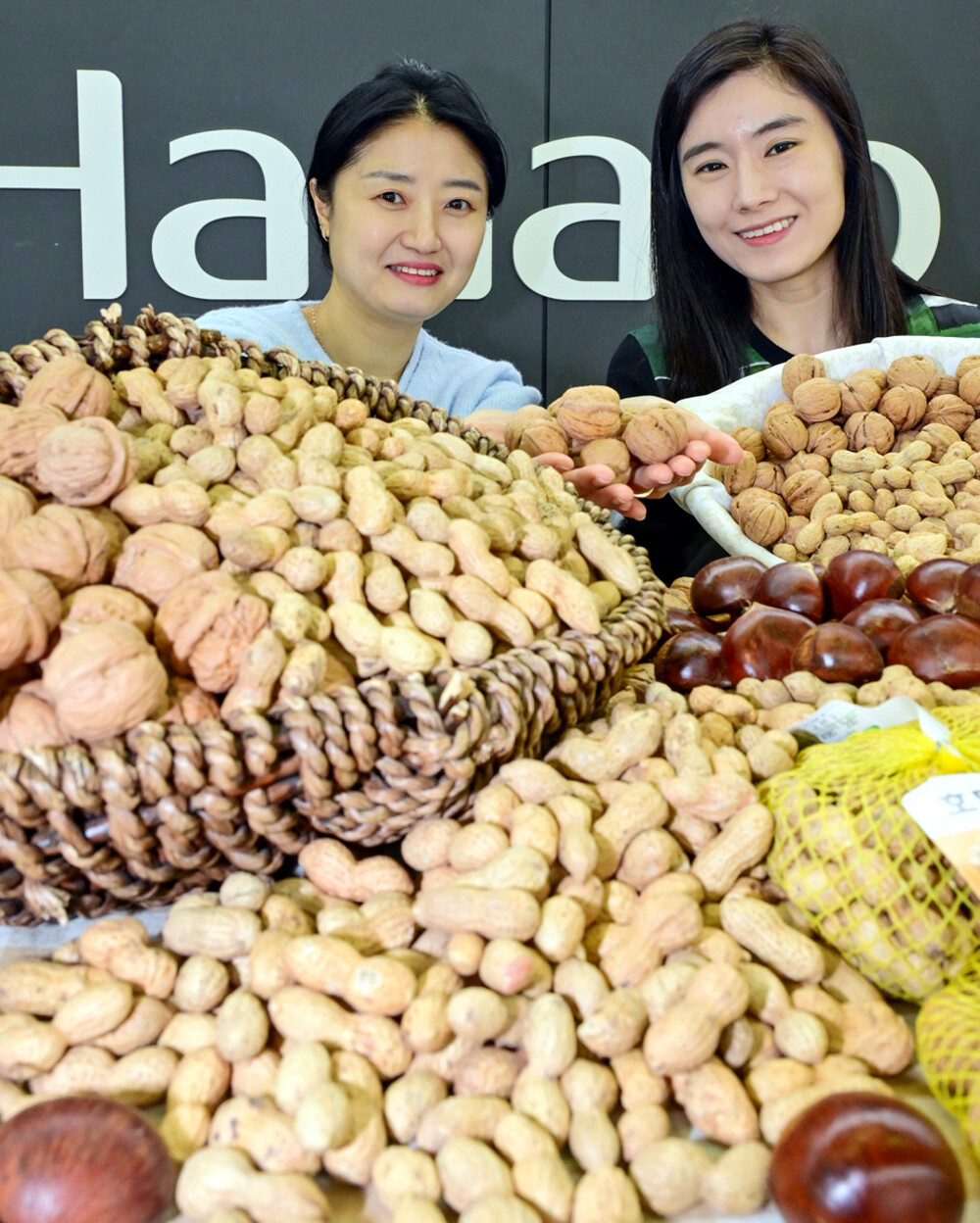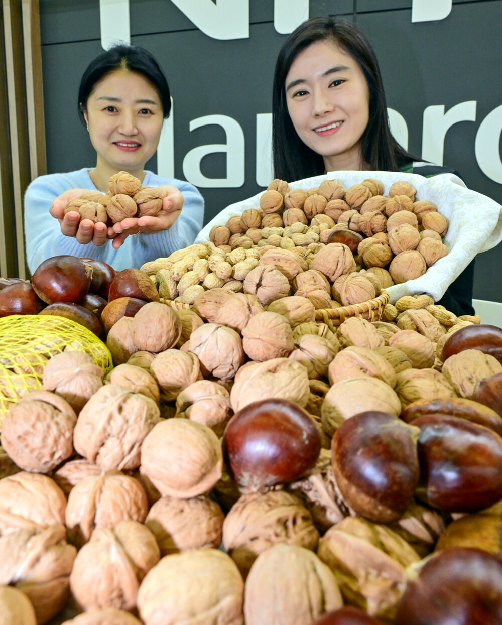 25일 서울 서초구 하나로마트 양재점에서 모델들이 정월대보름을 맞아 부럼 등 먹거리를 선보이고 있다. 농협유통 제공