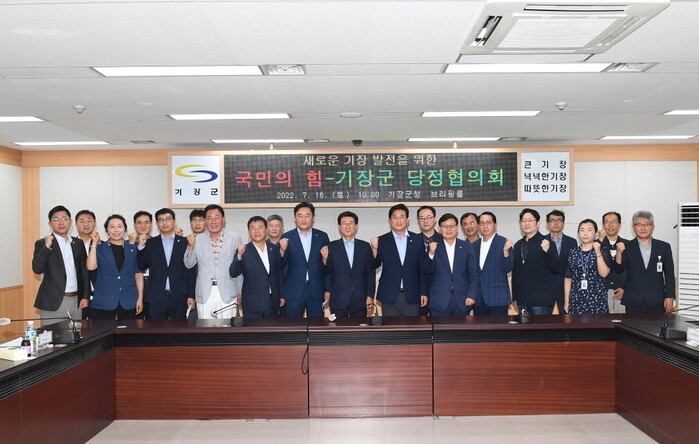 이날 당정협의회에는 기장군수, 국회의원, 기장군의회 의장을 비롯한 국민의힘 소속 시·군의원 등 30여 명이 참석해 기장군의 발전과 지역현안 해결을 위한 공동 대응에 뜻을 함께하고, 정책 방향 공유와 협력을 강화해 나가기로 했다.