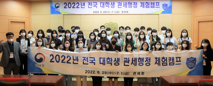 관세청(청장 윤태식)은 29일부터 7월 1일까지 천안에 위치한 관세인재개발원에서 전국 31개 대학, 40명의 대학생이 참가하는 ‘2022년 전국 대학생 관세행정 체험캠프’를 개최한다고 밝혔다.