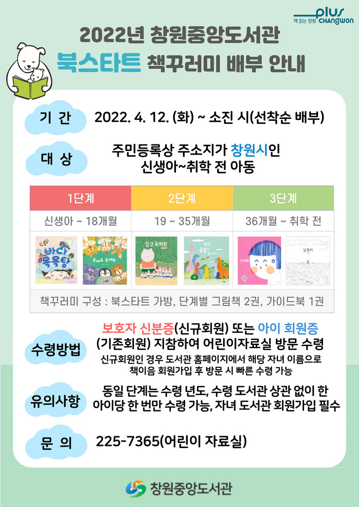 [로컬세계 한용대 기자]경남 창원특례시 성산도서관과는 오는 12일부터 2022년 북스타트 책꾸러미를 배부한다고 8일 밝혔다.