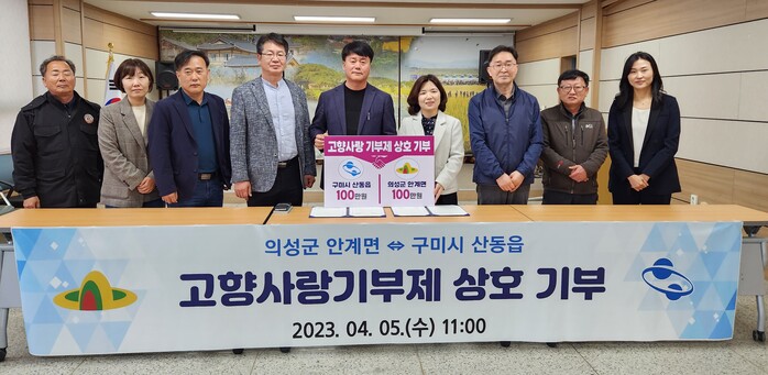 [로컬세계=박상진 기자]경북 의성군 안계면은 지난 5일 안계면사무소에서 구미시 산동읍과 고향사랑기부제 활성화를 위한 업무협약을 체결했다고 7일 밝혔다.