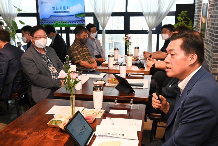 [로컬세계=김병민 기자] 이재준 수원특례시장과 간부 공무원들이 지난 29일 인계동 한 카페에서 ‘열린토론회’를 열고, 재정효율화 방안을 모색했다.