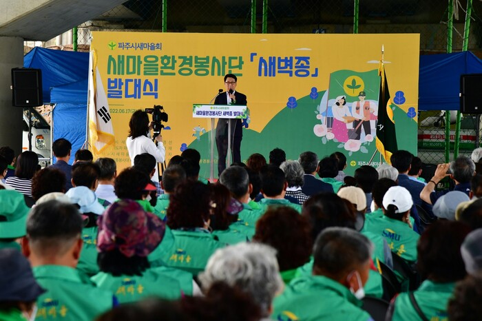 최종환 파주시장은 “또 하나의 기적을 만들어 낼 새마을 환경봉사단 ‘새벽종’의 발대식을 진심으로 축하드린다”며, “탄소중립 실천을 위한 ‘줍깅’ 운동이 큰 성과를 거두기를 기대한다”고 전했다.