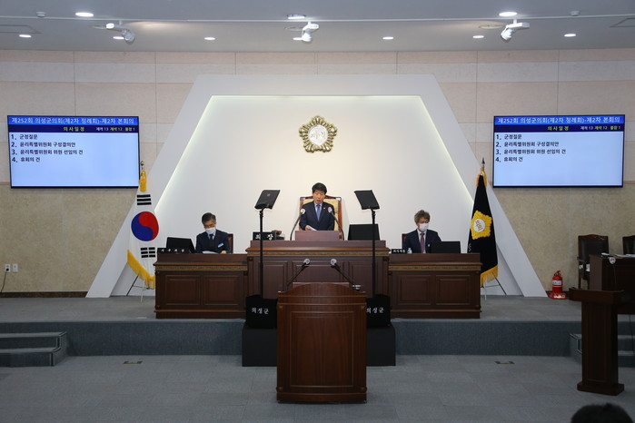 [로컬세계 박상진 기자]경북 의성군의회(의장 배광우)는 제252회 제2차 정례회 기간 중 8일 오전 10시 제2차 본회의를 열고 군정 현안에 대한 군정질문과 답변 시간을 가졌다.