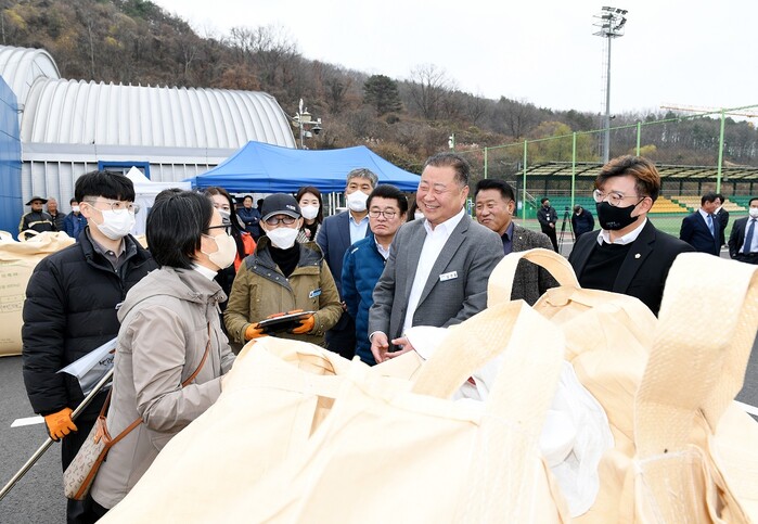 [로컬세계 = 이영원 기자]김경일 파주시장은 지난 15일 2022년산 공공비축미곡·시장격리곡 수매 현장인 문산체육공원을 방문해 농업인들을 격려했다.