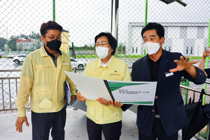 ▲김경희 이천시장이 공공체육시설 확충사업 추진 현장을 점검하고 있다. 이천시 제공 |